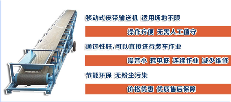 移動式皮帶輸送機(jī)在設(shè)計上不同于傳統(tǒng)的固定式皮帶輸送機(jī),整機(jī)結(jié)構(gòu)輕便合理,而且因其通行度較好,可以廣泛的使用在糧食、散料、輕工、包裝物的室內(nèi)外裝車轉(zhuǎn)運(yùn)作業(yè)。