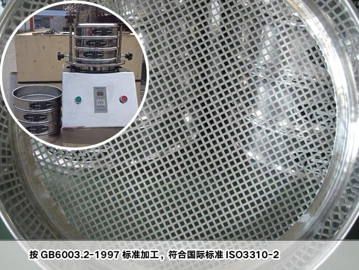 沖孔板試驗篩,按GB6003.2-1997標準加工。符合國際標準ISO3310-2:1990 R20/3,R20,R40/3系列。同時我公司也生產與φ200標準試驗篩配套的拍擊式試驗篩機、標準篩機。拍擊式試驗篩機、標準篩機符合國家標準,最多可安裝8層標準振動篩,設備裝有定時器可定時關機,保證每次生產或試驗的一致性。