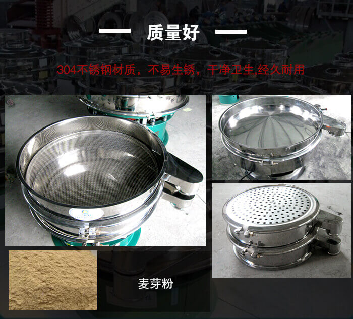 麥芽粉振動篩采用的是優(yōu)質304不銹鋼材質,不易生銹,干凈衛(wèi)生,而且不會被物料所氧化,經久耐用;每件產品經過多道程序的檢驗和考核的,保證質量達標還經過了ISO9001的認證