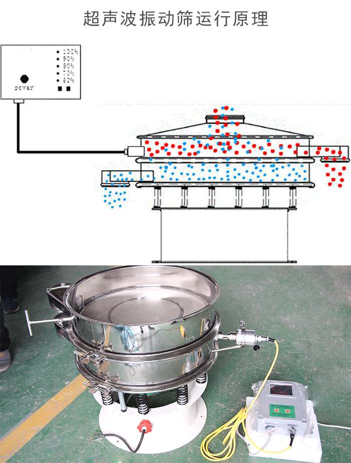 超聲波振動篩是將220v、50HZ或110v、60HZ電能轉(zhuǎn)化為38KHZ的高頻電能,輸入超聲換能器,將其變成38KHZ機械振動,從而達(dá)到高效篩分和清網(wǎng)的目的。超微細(xì)粉體接受巨大的超聲加速度,使篩面上的物料始終保持懸浮狀態(tài),從而抑制粘附、摩擦、平降、等堵網(wǎng)因素。解決了強吸附性、易團聚、高靜電、高精細(xì)、高密度、輕比重等篩分難題,使超細(xì)微粉篩分不再難事,特別適合高品質(zhì)、精細(xì)粉體的用戶使用 高頻振動篩采用筒體式偏心軸激振器及偏塊調(diào)節(jié)振幅,物料篩淌線長,篩分規(guī)格多,具有結(jié)構(gòu)可靠、激振力強、篩分效率高、振動噪音小、堅固耐用、維修方便、使用安全等特點。由于高頻振動篩采用了高頻率,一方面破壞了礦漿表面的張力和細(xì)粒物料在篩面上的高速振蕩,加速了大密度有用礦物和析離作用,增加了小于分離粒度物料與篩孔接觸的概率。