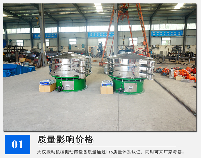 做篩分設備的廠家有很多,但是也有很多皮包公司,沒有生產能力,還有一部分廠家廠家為了盈利,以次充好,會在選材、生產環節偷工減料,看著當時買的可便宜,但是沒想過售后問題,后續會因為設備質量問題問產生大量費用。大漢超聲波振動篩質量以與其為了一時的低價誘惑造成在設備質量方面的疏忽是必須要避免的。大漢振動機械振動篩設備質量是通過iso質量體系認證的,同時您也可以來大漢振動機械考察,看一下我們的生產能力。好產品不怕比價格。