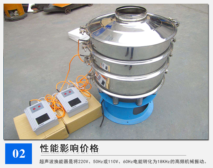 大漢機械超聲波振動篩是將220V、50Hz或110V、60Hz電能轉化為18KHz的高頻電能,輸入超聲換能器,將其變成18KHz機械振動,從而達到篩分和清網的目的,使超微細粉篩分成為易事。特別適合高附加值精細分體的用戶使用。無需增加其他任何篩網清理裝置,延長篩網使用壽命,降低用戶維修成本。