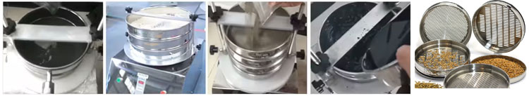 電磁振動篩工作時,采用電磁振動器用作振動源,振動經底座傳遞至底座上由粗到細排列的一組標準試驗篩。同時,安裝在下部的振動電機對物料進行篩選和篩分,物料在標準試驗篩的篩面上振動,使小于篩孔尺寸的物料顆粒篩入下層試驗篩,并逐層篩分,每層試驗篩的顆粒尺寸相同,從而實現不同粒徑物料的分離。