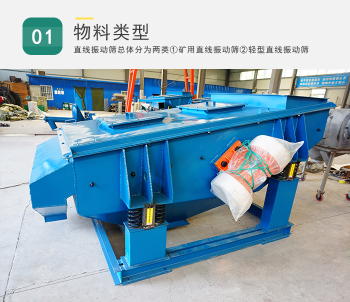 如果用于采礦篩分就選大型礦用直線振動篩,如果是篩分一些小型物料就采用輕型直線振動篩篩分