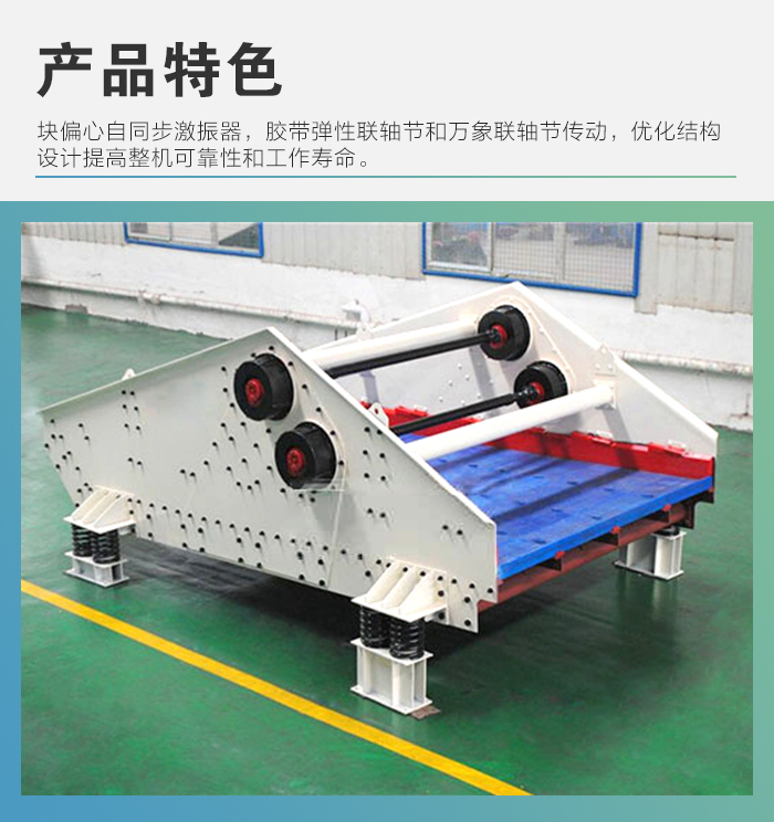 1.采用塊偏心自同步激振器。 2.采用膠帶彈性聯(lián)軸節(jié)和萬象聯(lián)軸節(jié)傳動(dòng) 3.優(yōu)化結(jié)構(gòu)設(shè)計(jì)提高整機(jī)可靠性和工作壽命